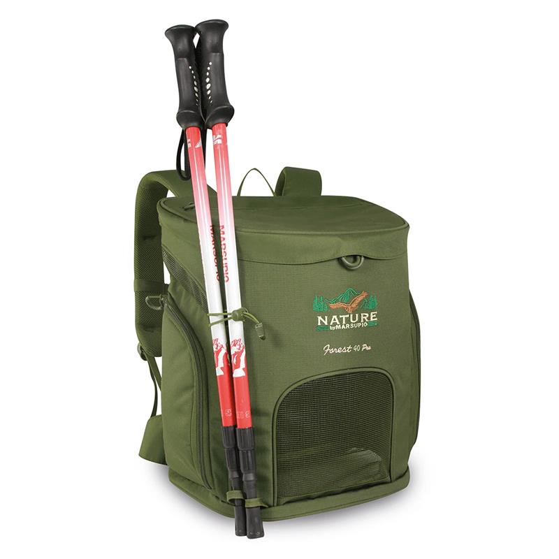 Neuer technischer Rucksack für das Sammeln von Pilzen, aus Mar-tex Ripstop-Gewebe. Entsprechend der italienischen Gesetzgebung dank seines Mesh-Bodens verfügt er über zwei weitere Mesh-Einsätze vorne und an der Seite. Das Innere ist mit einer abnehmbaren, starren Struktur ausgestattet, die die Stabilität des Rucksacks gewährleistet und die Unversehrtheit der Pilze bewahrt. Die Schultergurte sind gepolstert und verstellbar, mit einem verstellbaren Brustgurt mit Pfeifenverschluss. Er ist mit einem atmungsaktiven U-Rückensystem und einem verstellbaren Hüftgurt ausgestattet. Er verfügt über seitliche Schlaufen für Stöcke und zwei Seitentaschen, von denen eine ein zusätzliches Fach für Karte/Erlaubnis besitzt, während die andere aluminisiert ist. Eine zusätzliche Tasche an der Kapuze ermöglicht den Transport von Dokumenten und persönlichen Gegenständen und ist mit einem SOS-Informationsfeld versehen. Er ist mit einem verstellbaren Schultergurt und einem Tragegriff ausgestattet.