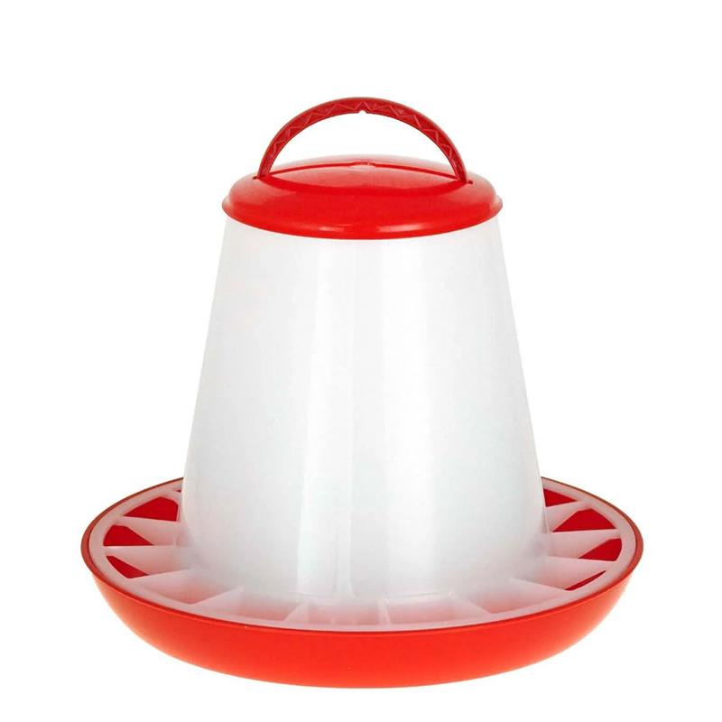 Der 3 kg Kunststoff-Futtertrog für Geflügel ist ein Futtertrog für alle Arten von Geflügel: Hühner, Küken, Fasane. Hergestellt aus hochwertigem Kunststoff, ist er einfach zu bedienen und kostengünstig. Dieser Futtertrog ermöglicht eine saubere Futterverteilung für Geflügel und Küken durch sein Anti-Verschwendungsgitter, abnehmbaren Deckel und handliche Aufhängebügel. Der Boden des Futterspenders ist rot, der Futterreservoir ist halbtransparent weiß.
