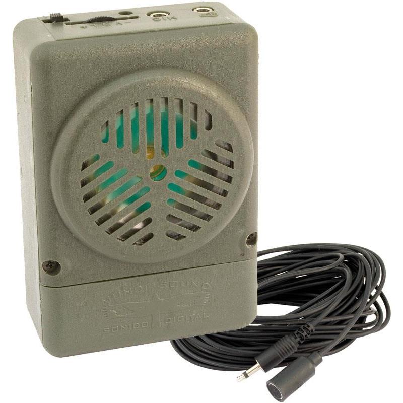 Platzieren Sie das Mikrofon außerhalb Ihres Unterstands in der wahrscheinlichen Ankunftsrichtung des Wildes (bis zu 10 m), das Geräusch seines Annäherns wird verstärkt und wird Sie alarmieren !