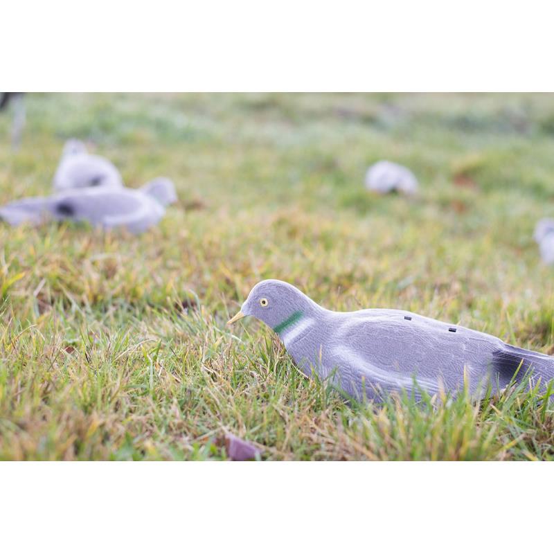 Dank der feinen Beflockung wirken die Locktauben deutlich realistischer. Es gibt keine Reflexionen oder Glanz mehr, selbst bei sonnigem und feuchtem Wetter. Der beiliegende Erdstift sorgt dafür, dass sich die Halbschale leicht im Wind bewegt und mit dem Wind spielt, was die Attraktivität weiter erhöht. Je nach Bedarf können Sie den Spieß in eine der 2 Öffnungen an der Rückseite der Taube einsetzen und so Tauben beim Aufnehmen von Futter nachahmen. Sie sollten mindestens 10 Locktauben für Ihr Lockbild verwenden - auch hier gilt: Je mehr Locktauben Sie verwenden, desto größer ist der Anziehungseffekt.