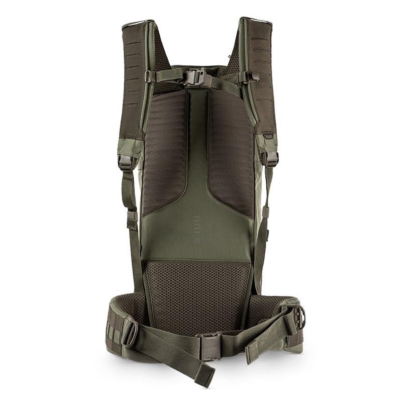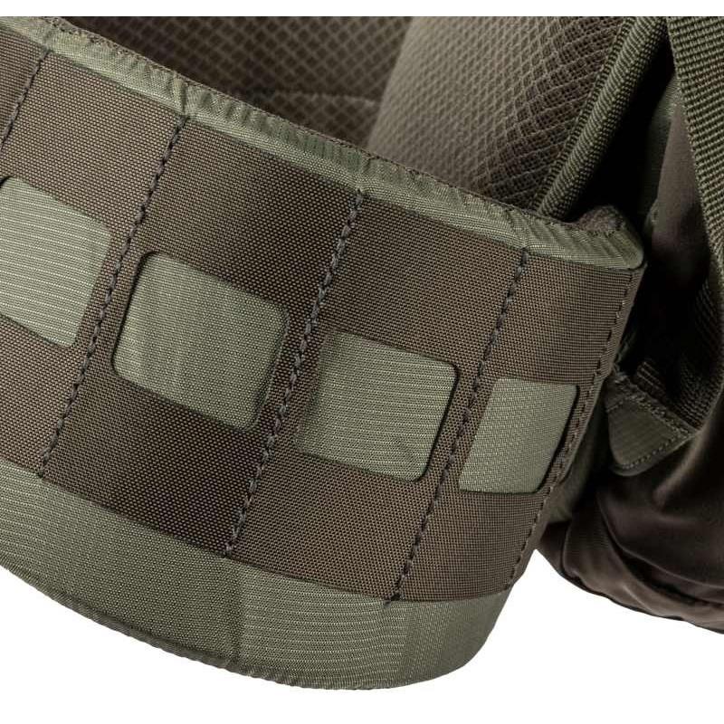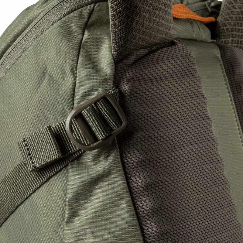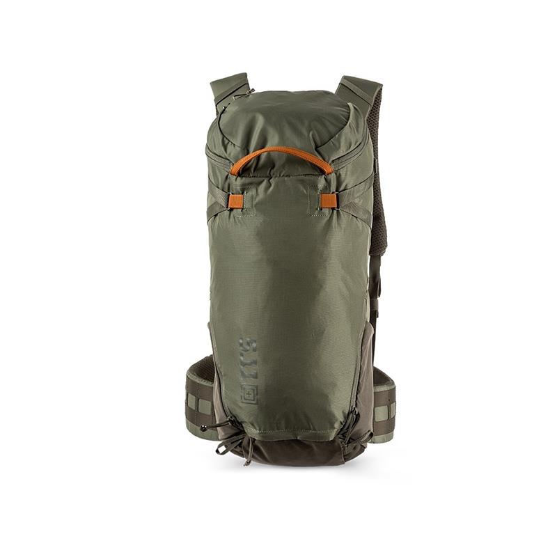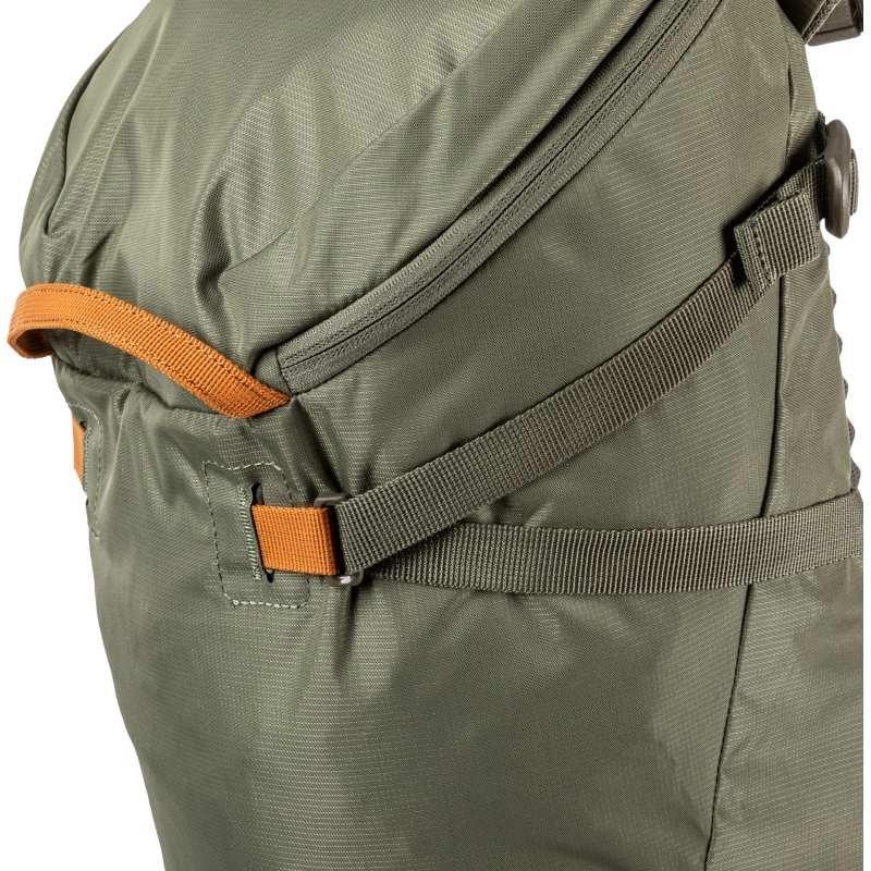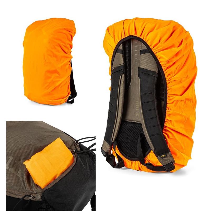 Features: • Versatile backpack • Main compartment top opening with bucket lid • Two expandable exterior pockets for water bottles • Upper external pocket for accessories or first catches • Internal hydration sleeve with a securing strap and a zipped top pocket • Gear passages with side compression straps • Lumbar pad with a removable hip belt, laminated laser-cut MOLLE and quick-release buckle • Concealed rain cover in high-visibility orange for safety • Padded shoulder harness with an adjustable sternum strap and a laser-cut MOLLE platform • Padded back panel with air circulation channel • Lower zippers for access to secondary main compartment • Front and rear carry handles • 330D Ripstop Nylon fabric (main body) | 200D PU coated polyester (rainfly rain cover)