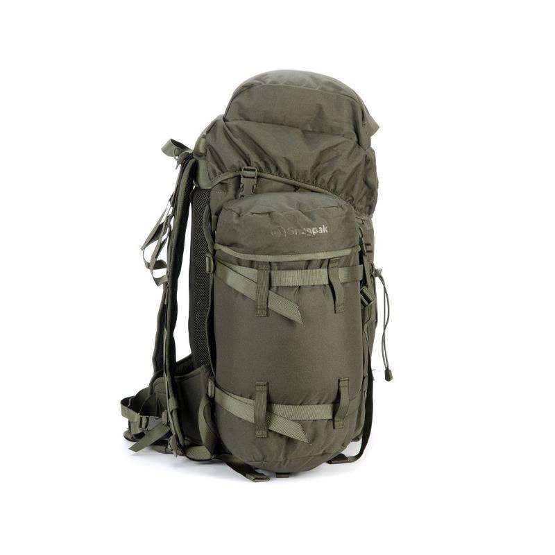 The RocketPak from Snugpak is a versatile and robust backpack perfect for hiking, trekking, bushcraft and military walking. It offers two load capacities with a main compartment of 40 litres and two detachable pockets of 15 litres each allowing for a total capacity of 70 litres. With this modularity, the RocketPak can be used for outings of one or two days using only the main compartment or for much longer outings by adding the two pockets of 15 litres. The RocketPak is made of 500 denier nylon that is very resistant and durable. This backpack also includes a removable rigid aluminium frame for better load stability. It offers good ventilation and moisture transfer with its mesh fabric construction on the body contact parts (back, straps and belt).