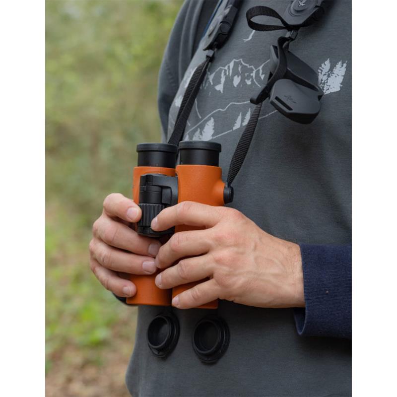 Thanks to its compact dimensions, this optical equipment is an ideal travel companion. With their revolutionary "wasp waist", these binoculars fit perfectly in your hand. Even in case of prolonged use, this design, combined with the reduced weight of only 640 g of the binoculars, ensures relaxed observation. The optional forehead rest is designed to offer users a comfortable observation experience for long hours, while preventing fatigue.