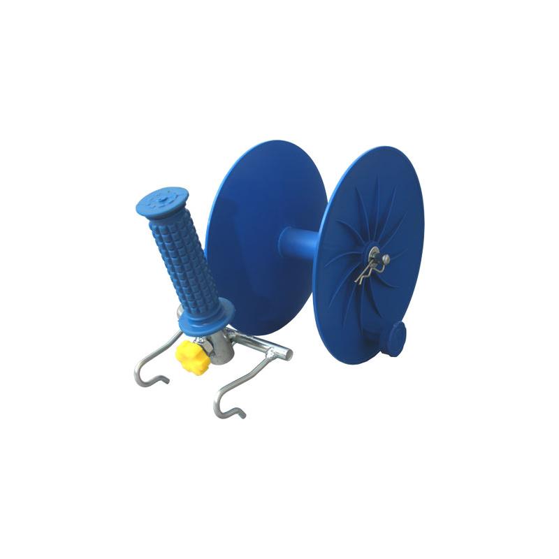 Features : • Parcel reel capable of holding 600 m of standard wire. • Steel locking cleat and very sturdy Galva support! • Mounting on a stake up to Ø 18 mm or on perimeter wire. • Interchangeable spool