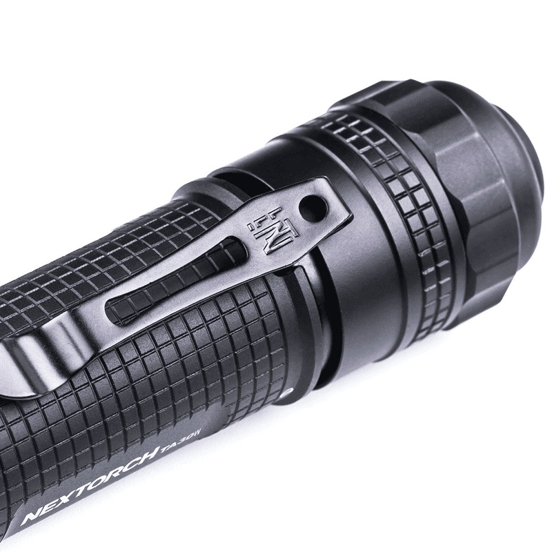 The NEXTORCH TA30W is a powerful EDC (Everyday Carry) flashlight, specially designed for law enforcement and tactical professionals. It emits a warm white light of 4 500 K, ideal for low-light operations and tactical environments. Thanks to its patented one-step variable-frequency strobe, it provides effective disorientation in critical situations.