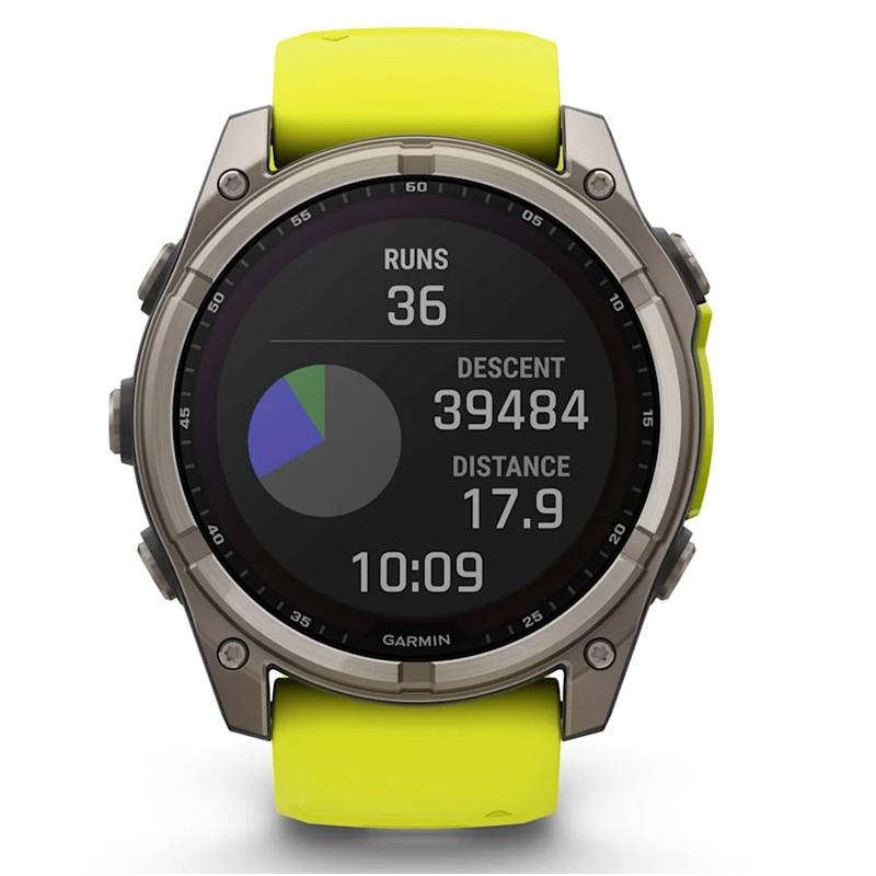 for elite athletes and adventurers who want to push their limits, this high-end multisport GPS smartwatch is designed to deliver exceptional performance and fits the largest wrists, with advanced strength-training features, diving functions, an internal speaker and microphone for voice commands, an integrated LED flashlight and battery life of up to 48 days thanks to the power sapphire™ solar glass1.