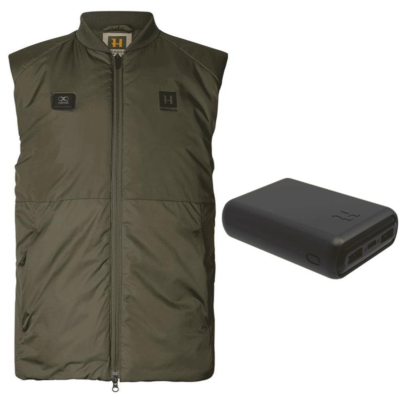 This pack includes: • 1 Men's Harkila Clim8 Base Heated Vest - Green • 1 Harkila Heat Power Bank Vers. 2 USB Battery