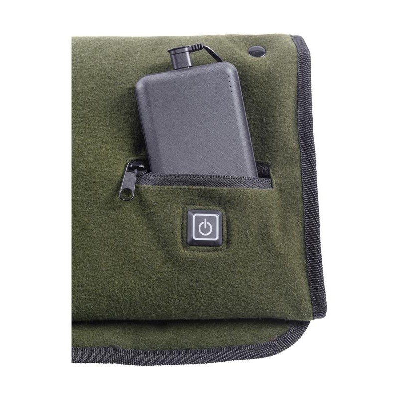 Hand Warmer Sleeve 100% polyester with knit lining. Composed of an adjustable heating element according to 3 heat intensities powered by a supplied 10,000 mAh battery. The elasticated belt allows to easily keep the sleeve around the waist. The snaps at the bottom once opened allow to transform this sleeve into a heated seat cover. Machine washable on delicate cycle 30°.