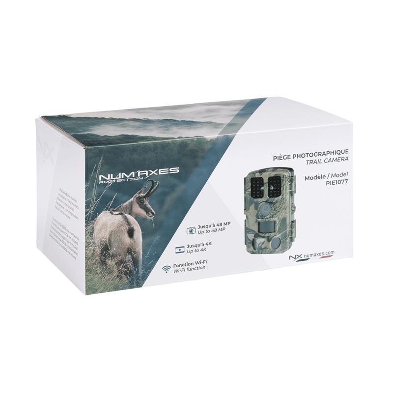 Features: • Wi-Fi function allows for remote: • viewing, downloading or deleting files • taking photos/videos • editing settings • checking remaining energy and memory capacity • Very easy to use • Great value for money • Photo resolution up to 48 MP • Video resolution up to 4K • Viewing angle: 84° • Detection angle: 120° • Detection distance: about 20 m • Infrared flash range: about 20 m • Trigger speed: 0.3 second • Waterproof: IP65 • Power supply: 8 AA batteries • Outlet for external power supply