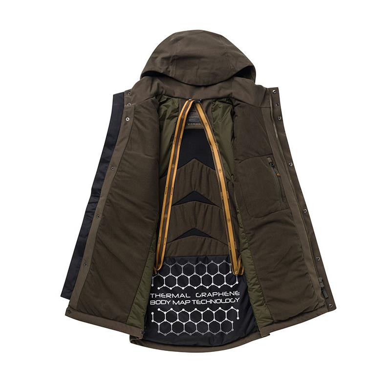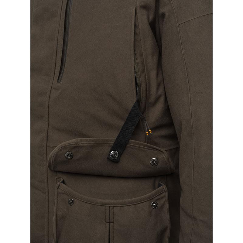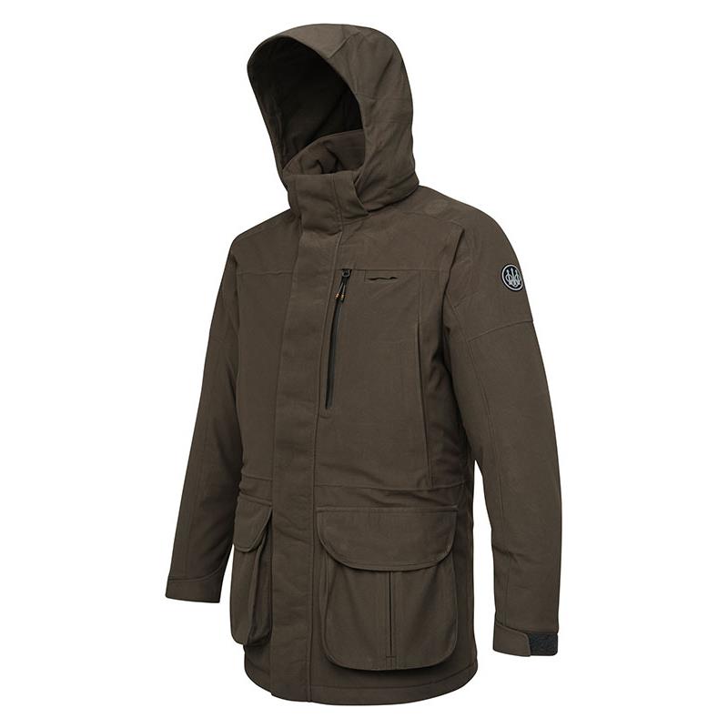 Characteristics: • Removable hood, preformed "EasyMovement" to offer a free field of vision • Soft microfleece inner collar • YKK zipper closure • Radio pocket with antenna hole • Large chest and side pockets with YKK zipper • Underarm vent opening with YKK zipper • Adjustable cuff with velcro • High visibility removable vest certified EN20471 in the rear pocket • One-opening rear game bag with YKK zipper • Removable "Beretta Hands Free" straps • Drawstring at the bottom • Rubberized Beretta logo on the left sleeve • Fit: regular