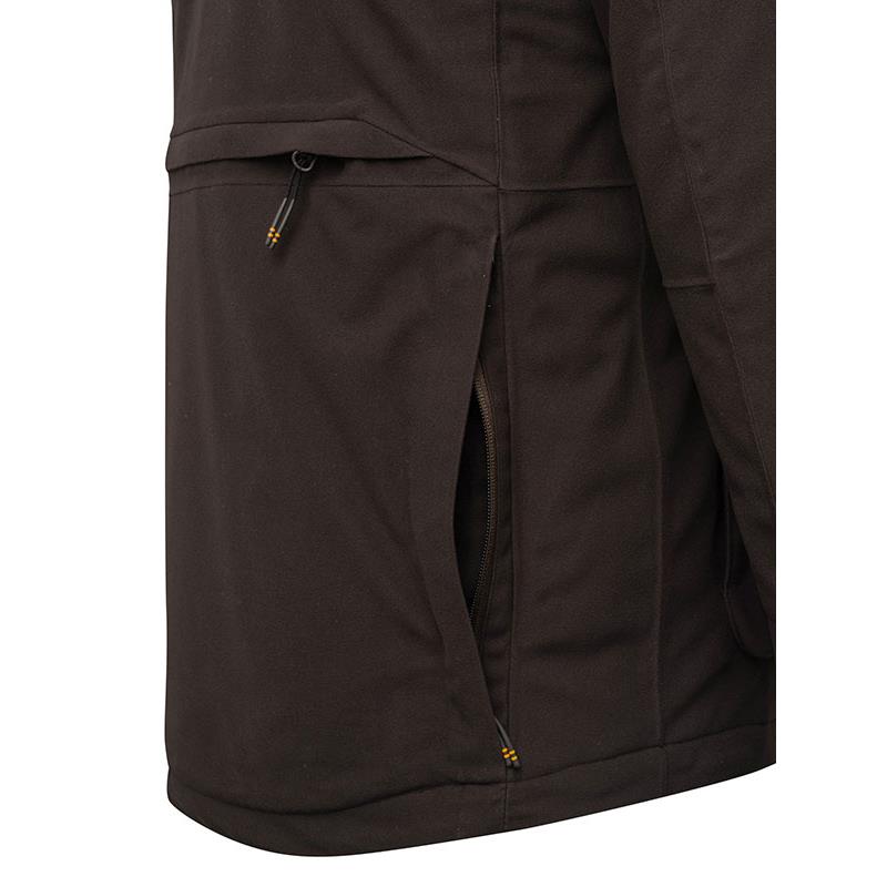 Men's hunting jacket BAKHOLD 3L designed for stalking in open places where it is essential to be completely silent and dry. It is waterproof and breathable. The jacket has soft and warm fleece panels inside, which improves thermoregulation in the start and stop conditions typical of stalking. Waterproof and breathable thanks to the BWB EVO membrane - Beretta Waterproof Breathable EVO. Ventilation zips under the arms to avoid overheating and ensure breathability. High visibility removable vest certified EN20471 in the back pocket. The outer material underwent a DWR treatment - "Durable Water Repellent". The jacket may be paired with the BAKHOLD trousers or the Muker GTX trousers.