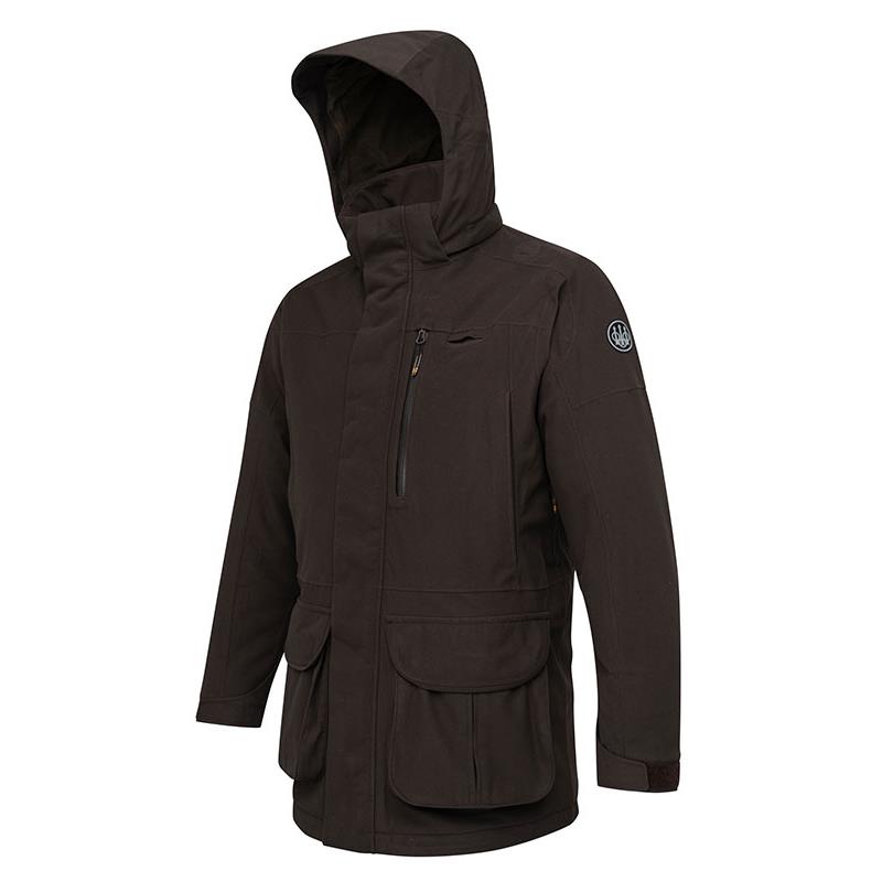 Features: • Removable, pre-shaped "EasyMovement" hood for a free field of vision • Soft microfleece inner collar • YKK zipper closure • Radio pocket with antenna hole • Large chest and side pockets with YKK zipper • Underarm ventilation opening with YKK zipper • Adjustable cuff with velcro • High visibility removable vest certified EN20471 in the back pocket • Rear game pouch with a single opening with YKK zipper • Removable "Beretta Hands Free" suspenders • Drawstring at the bottom • Rubberized Beretta logo on the left sleeve • Fit: regular
