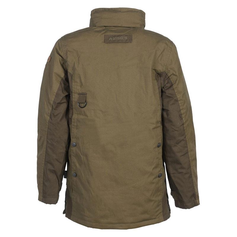 65% polyester, 35% cotton. With waterproof and breathable polyurethane membrane, sealed seams, 100% polyester wadding. Lining 100% polyester. Waterproof fabric. Hand-warmer pockets, 2 large lower pockets, 2 inner pockets, game bag, game-carrying ring, hood integrated into the collar