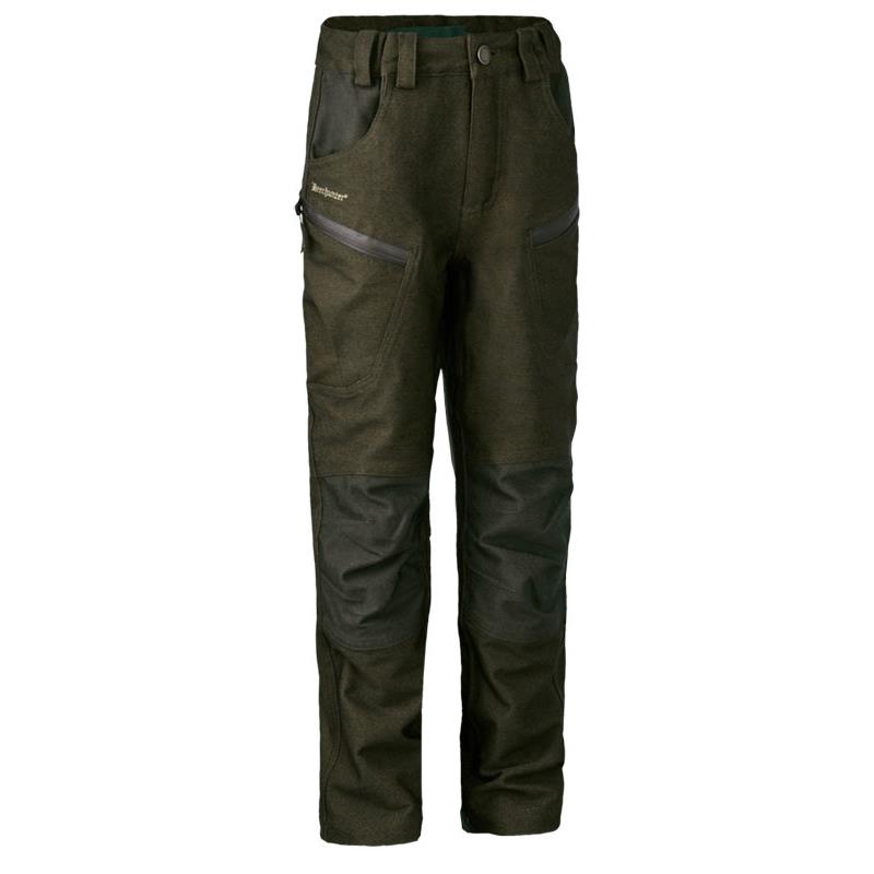 The Deerhunter Hunting trousers have pre-shaped knees and an elastic waistband for a comfortable fit and greater freedom of movement. Two front pockets and two thigh pockets with zippers, as well as a hidden pocket for a knife, offer a multitude of storage options for all your everyday essentials. Complementing the style and cut of the Deerhunter Hunting trousers, there is a single rear pocket with a zipper and an ankle strap adjustable with Velcro for a perfect fit over your shoes.