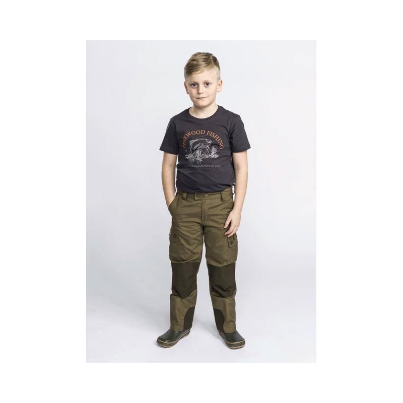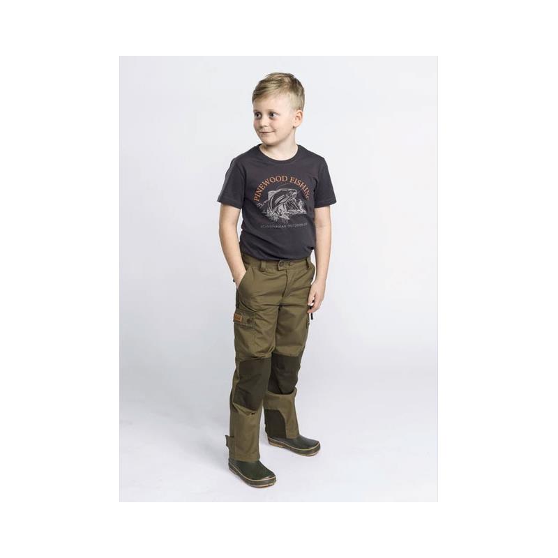 Practical pants for children. Elastic waist for more comfort and adjustment. Reinforcements at the knees and back. Articulated knees. Adjustable leg bottoms. Made in our durable and airy TC-Lite. Treated with an organic impregnation-Bionic Finish® Eco for additional water-repellent and anti-stain properties. Several practical pockets.