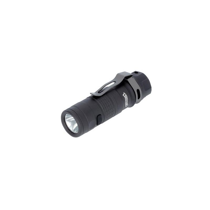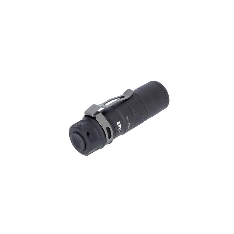 Compact and versatile flashlight LED LUMINUS SST40 4 brightness levels (5/50/200/400 lumens), strobe and beacon On/off and momentary-on via the rear switch Brightness selection / special modes via the side switch Brightness level memory (starts at the previously used level) Built-in warning when remaining capacity is 25%. Powered by CR123 battery (3 v lithium) Compatible with li-ion 16340 battery (450 lm max.) Waterproof aluminum body (IPX8), hard-anodized, with removable clip Supplied with a CR123 battery, a nylon pouch, a lanyard and a spare O-ring