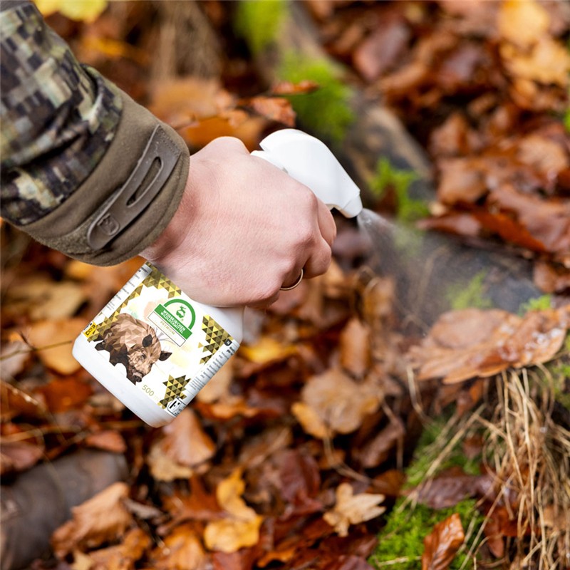 Application tips: • This product has multiple uses: • When sprayed regularly on a tree trunk, on a stump, or on substrate around baiting spots or wallows, it helps attract more animals to these strategic locations. • When sprayed regularly around hides, it helps attract large game to make hunting or culling more effective. • Finally, during your stalking hunts or while in a hide, spray this product on your clothing to effectively mask your body odor. • Easy to use with its 500ml bottle equipped with a spray.