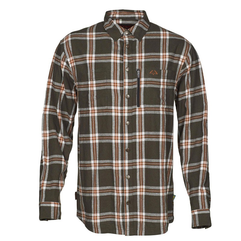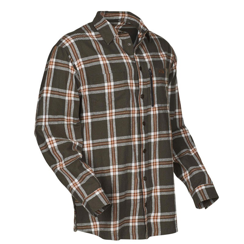 This cotton shirt is perfect for hunters and outdoor enthusiasts looking for a stylish and versatile garment. The shirt has a regular fit and is made of soft cotton. The classic collar and check pattern give it a timeless style that adapts to many situations. The shirt buttons up with snap buttons and features a chest pocket and a vertical zip pocket.