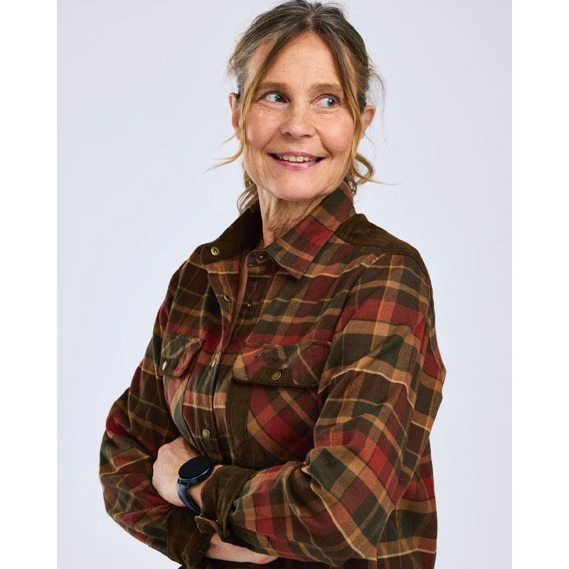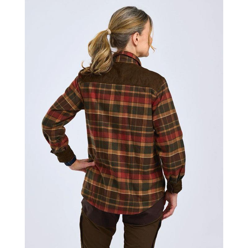 Exclusive, resilient flannel shirt with a feminine cut and vibrant colours. Snap-button closure. Flap chest pockets and a zippered security pocket. Suede-look details give it an exclusive touch. Ideal for hunting and outdoor activities.