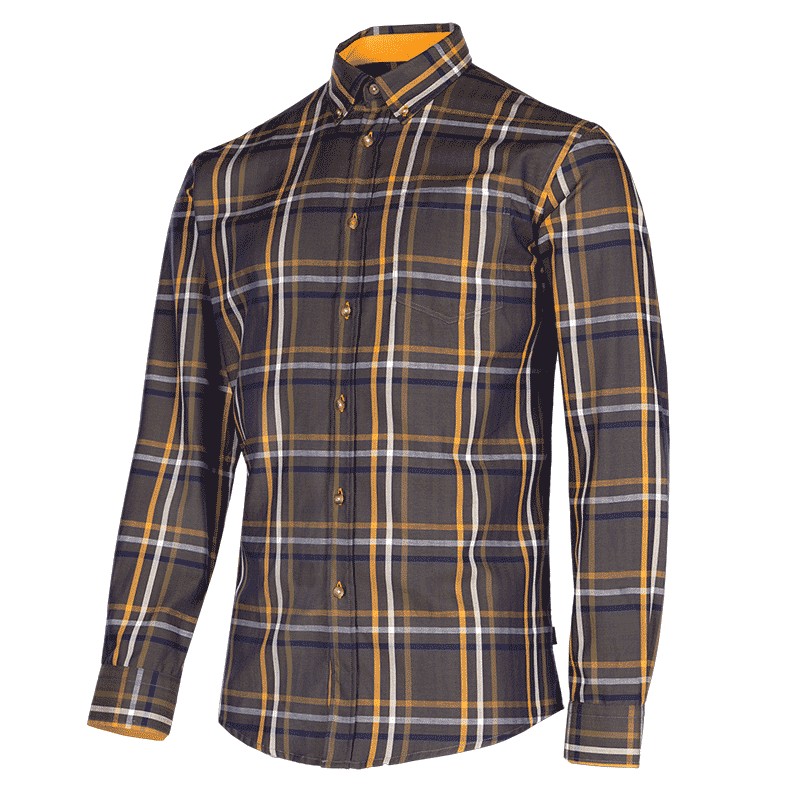 Checked long-sleeve shirt in 100% brushed cotton, with chest pocket and buttoned collar; stays tucked in thanks to its extra length.