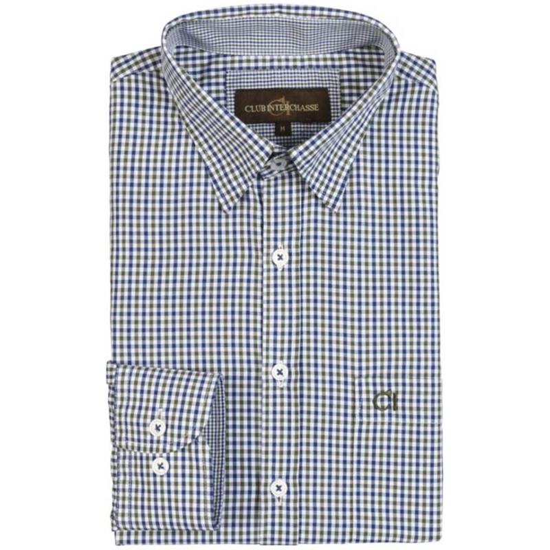 • Shirt 100% cotton. • Elbow patches • Inner collar and cuffs in contrasting color, • Hidden button-down collar, • Patch pocket, CI embroidery. • All our shirts come with a band bearing the Club Interchasse emblem