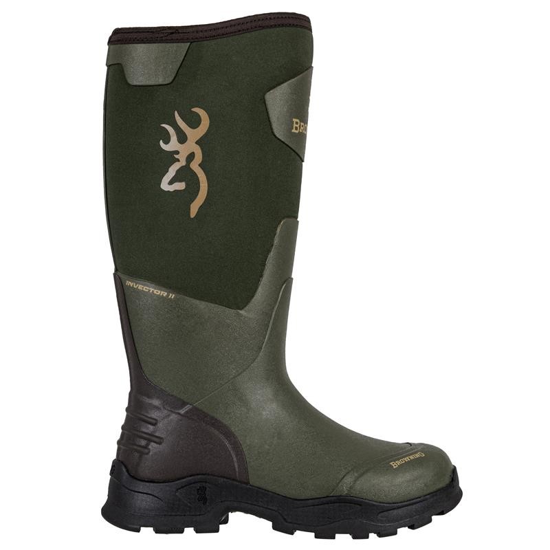Features : • Silhouette : below-the-knee boots • Size range : 40 @46 • Upper color : Military green, black, dark brown • Upper material : Rubber and Neoprene. • Lining material : fleece with insulation • Microban : 3 mm neoprene outsole. • Trak sole with Browning rubber axle. • Waterproof membrane with regular prevention