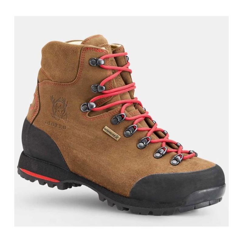 Features: • Upper: Full grain leather mm 2.4 / 2.6 • Upper Features: Single piece • Upper Protection: Rubber side band with red insert • Inner Lining: Wind-tex • Small Parts: Zamak alloy rustproof • Insole: Microporous • Sole: Vibram Foura • Sole stiffness: Soft, tender • Weight: 0.700Kg • Height: 21.00 cm