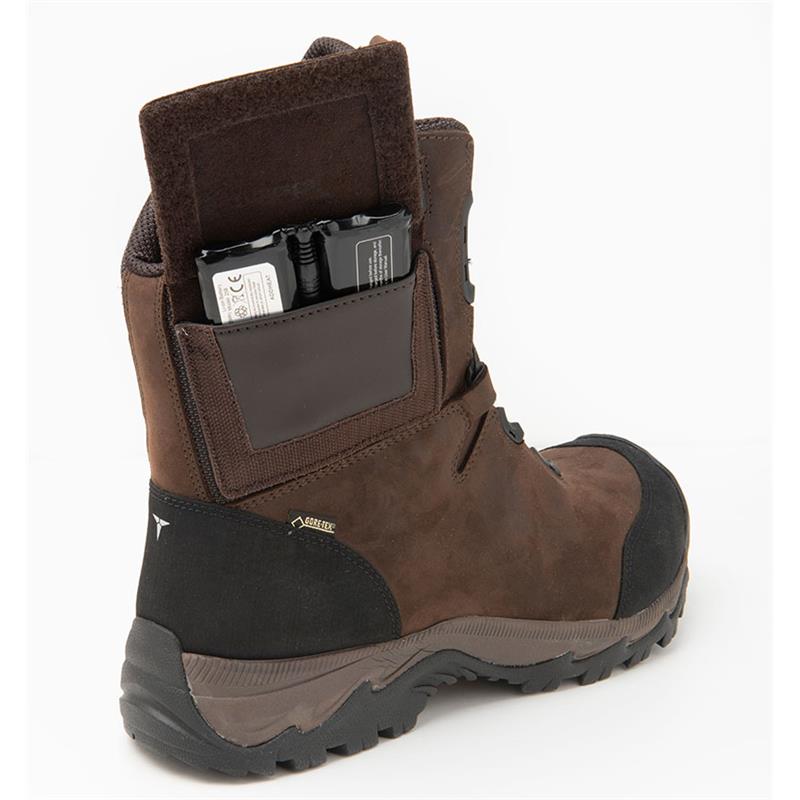 The batteries are fully integrated into the shoe, and can be easily removed from the shoe. Treksta Winter Shield System is powered by a 7.4V rechargeable battery in the cuff of the boot, and all batteries are themselves waterproof.