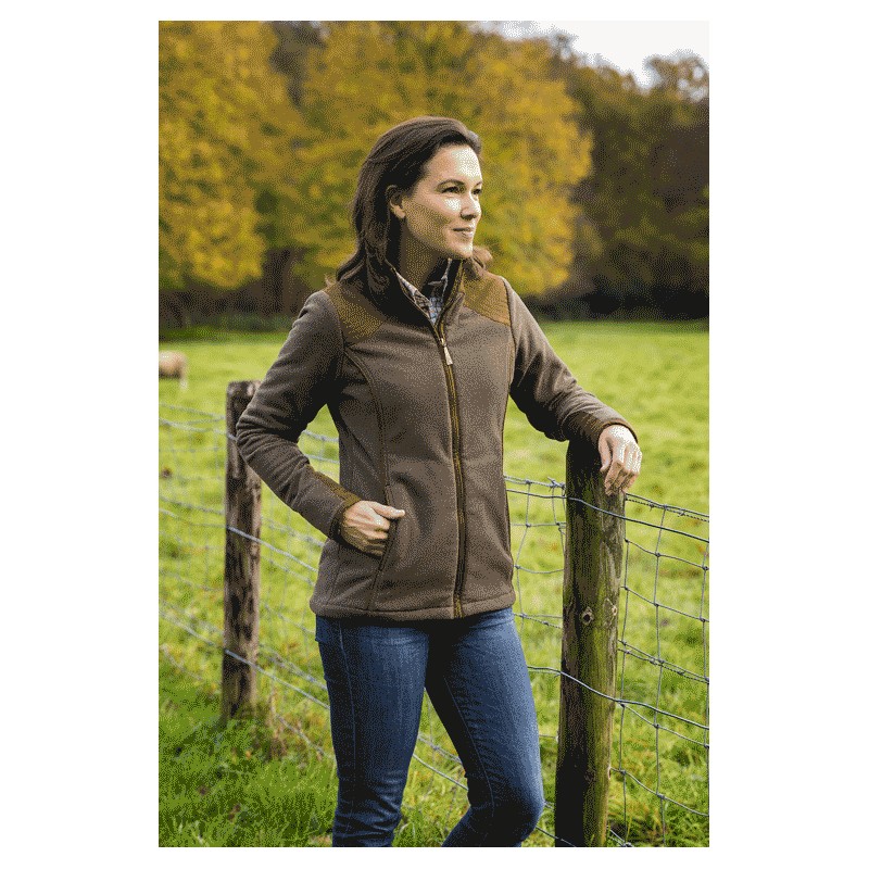 The Sutton waterproof fleece jacket has contrasting faux suede accents that give it a modern finish. It features two zippered pockets.