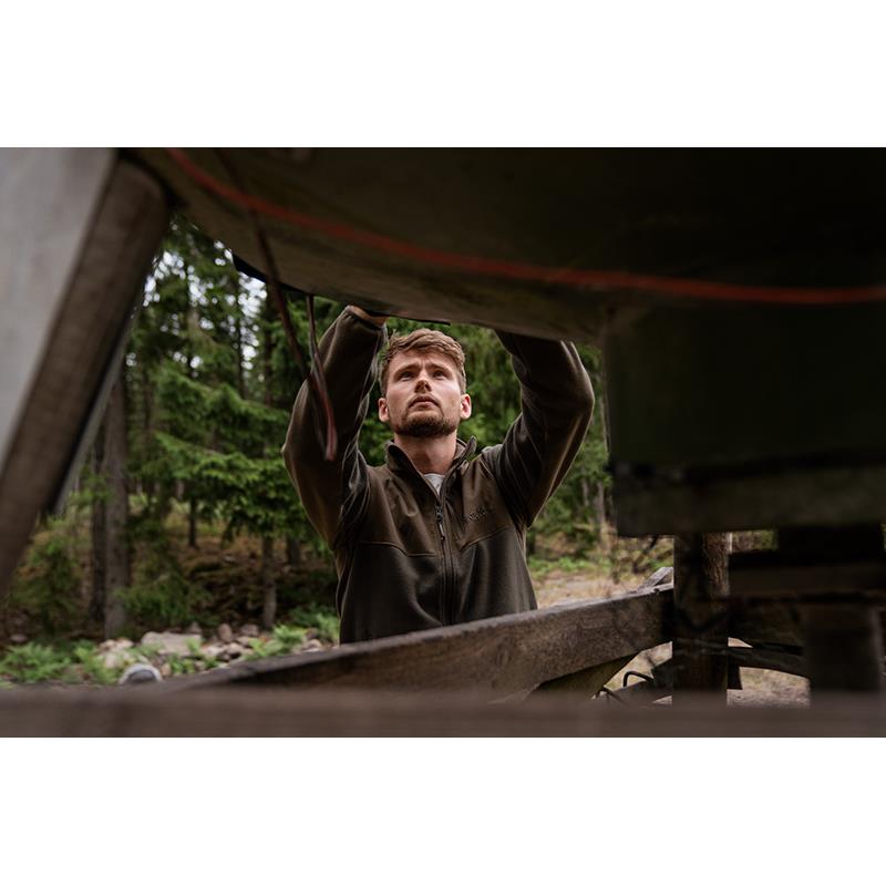 Durable and insulating, the Härkila Fjell fleece jacket is equipped with a quick-dry, breathable fabric, multiple pockets, contrasting shoulder panels, and stretch capabilities. Ideal for hunting, it is available in Shadow brown and Light willow green.