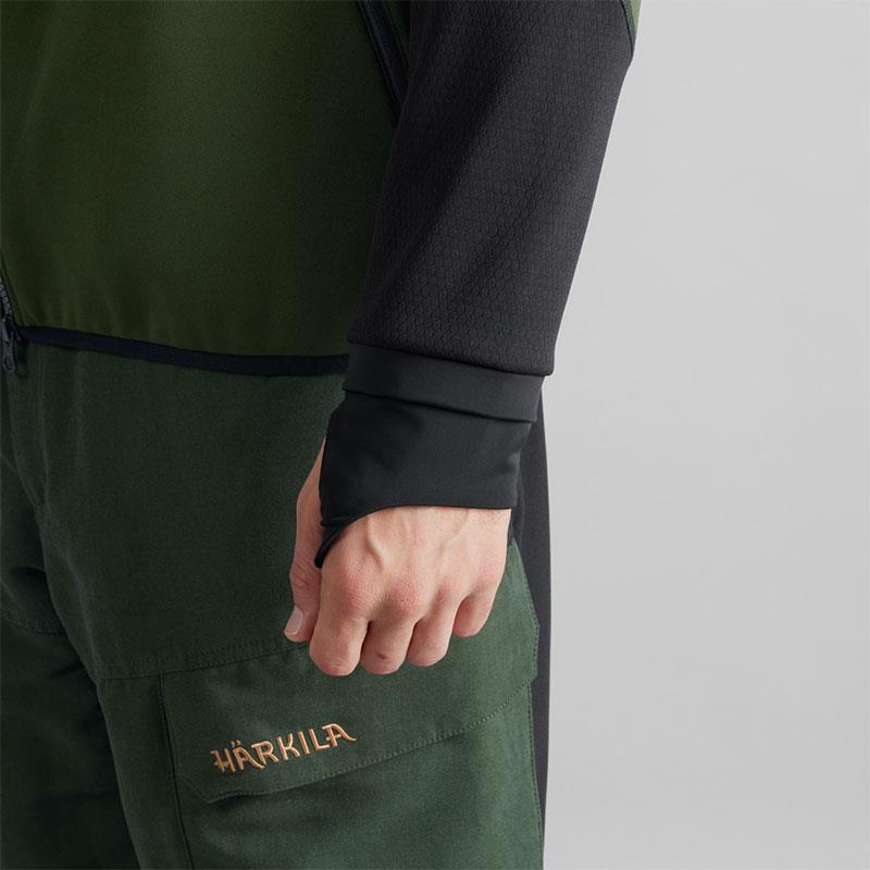 The Härkila Scandinavian fleece jacket is made from ArcStretch®, a breathable, soft, stretchy and quick-drying fabric, in other words perfect for intense activity, whether it's stalking game or maintaining the hunting grounds. There are inserts of thinner fabric under the arms and on the sides to let heat out when you're exerting yourself. This fleece jacket has two front pockets, as well as a chest pocket, all zipped, where you can store all your belongings. It also has a stand-up collar and thumbholes at the wrists to keep you well wrapped up when it's cool.