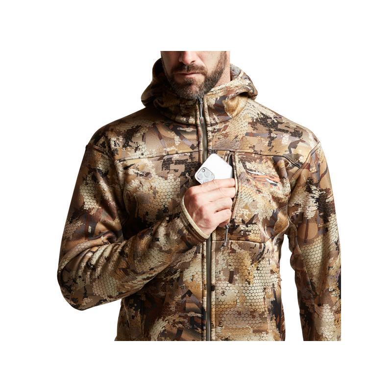 Features : • Ultra-quiet polyester knit fabric with very fluffy berber fleece inner • Eco-responsible fabric made from recycled materials • Midweight fleece panels on the sides and under the arms for optimal comfort and freedom of movement • The durable water-repellent finish sheds light precipitation and prevents the fabric from wetting • Zipped hand and chest pockets for secure storage • Sculpted hood that doesn't obscure peripheral vision • Integrated face mask for concealment • Low-profile thumbholes for easy layering • Total weight: 822gr