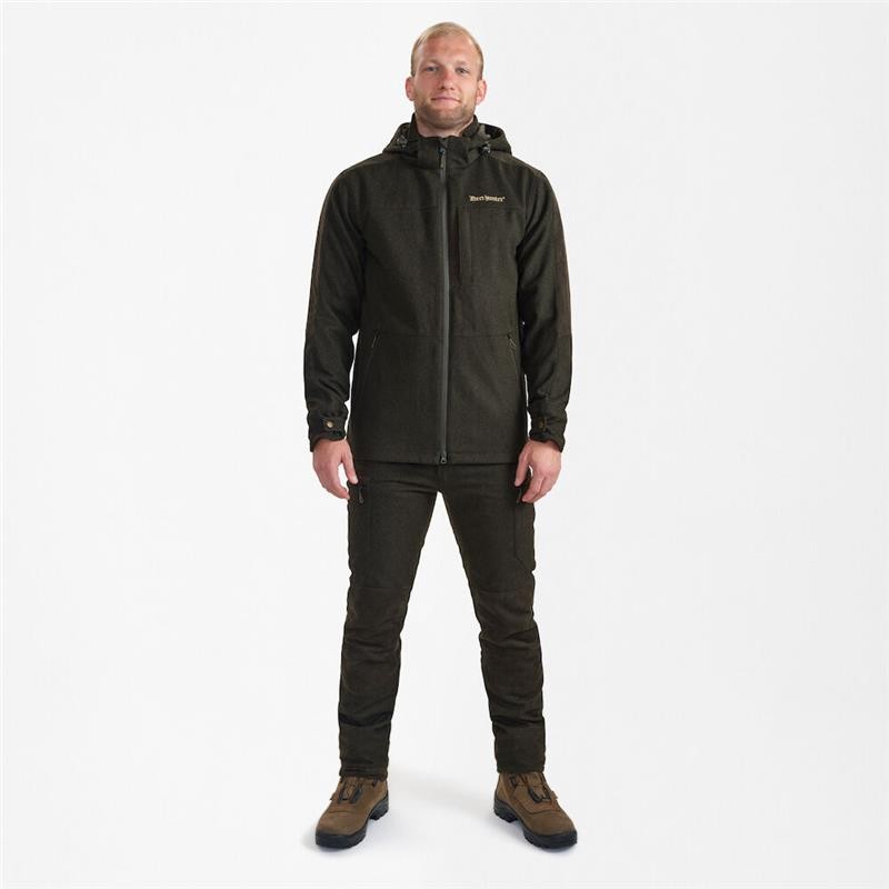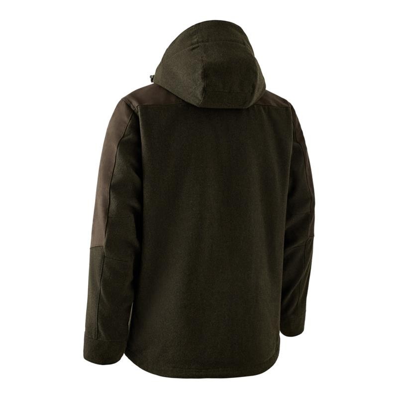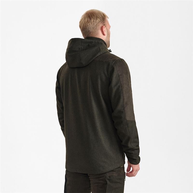 Features: • Soft and quiet quality of blended wool • Wool regulates body temperature • Imitation suede details • Removable hood • Waterproof two-way zip on the front • Radio Pocket • Elastic strap for antenna • Strap for radio attachment • Chest pocket with concealed zip • Two front pockets with waterproof zip • Preformed elbows • Adjustable at the sleeve opening with loop and snap button • Inner pocket with zip • Breathable mesh lining • Adjustable hem with drawstring