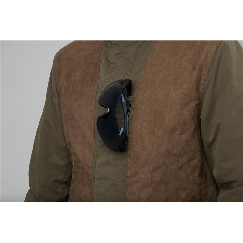 The lightweight Rannoch HWS shooting jacket is the ideal companion for shooting days out of the weather. It is made of a durable fabric reinforced with microsuede, has removable recoil pads, cartridge pockets with drain holes, and a fitted cut with waist adjustment.