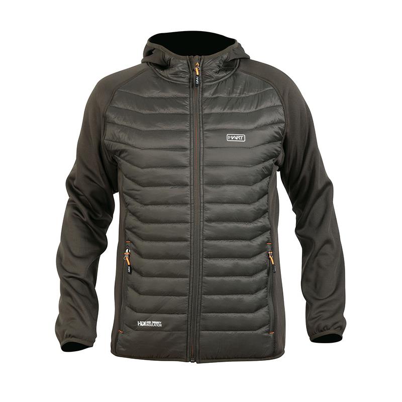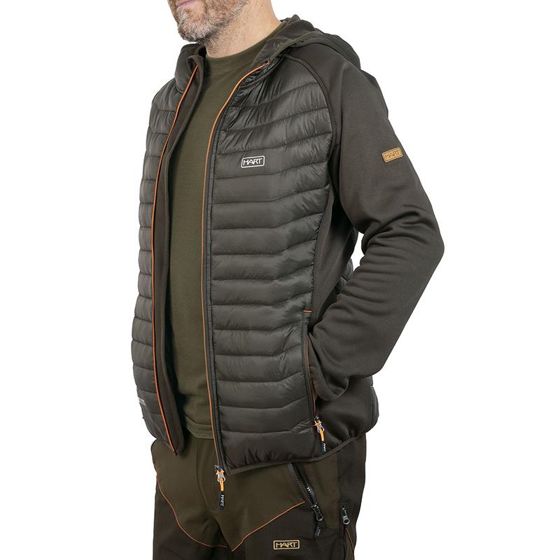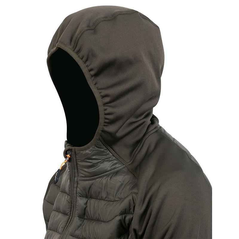 The jacket is divided into two parts: the front and the back are quilted and wind-resistant, while the sleeves and the hood are made of stretch microfleece so you can stay warm. The easy-access hand-warmer pockets with zippers keep your belongings secure. It can be worn as an outer or mid layer, depending on the temperature and the weather. Includes a small storage and carrying bag.