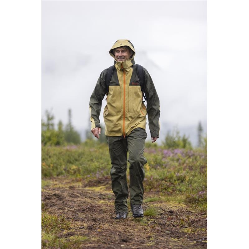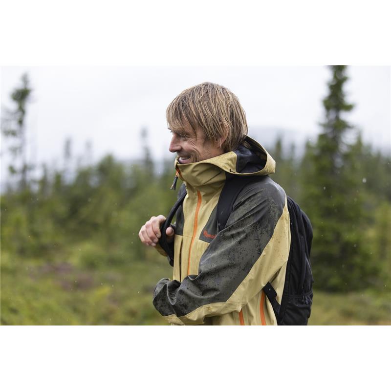 A technically equipped 3-layer jacket with a windproof and waterproof membrane, water-repellant zippers, sealed seams, and an integrated RECCO® reflector for your outdoor safety. Perfect for experienced hikers as well as beginners! The men's Abisko Trekking 3L jacket is a 3-layer jacket designed for seasoned hikers. It is equipped with 4-way stretch for improved mobility and exceptional breathability. The jacket is equipped with a highly breathable membrane that makes it windproof and waterproof. It also has sealed seams and water-repellant zippers to protect you from rain and bad weather. This jacket is not only stylish and lightweight, it also has side ventilation zippers that can be opened to increase air circulation and provide cooling during high activity levels. The cuffs and the bottom of the jacket can be tightened with drawstrings and self-adhesive closures to prevent moisture and cold from penetrating. The edge of the hood is reinforced to protect from rain and can be adjusted with a drawstring. The jacket has strategically placed front pockets that will not hinder the straps of your backpack. The high-up pockets are also easily accessible when the backpack waist belt is in use. In addition, it has two chest pockets and an inside pocket, all equipped with zippers to safely store keys or the phone.