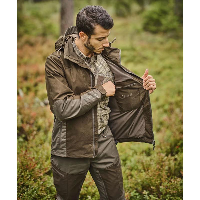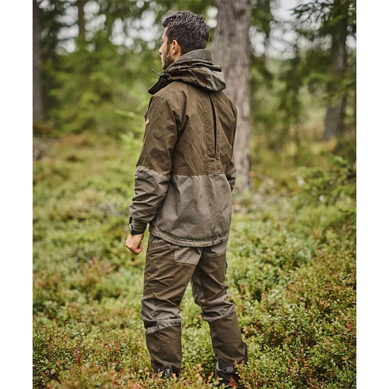Features: • Windproof • High breathability • Waxed finish • Water-repellent finish • Mesh lining • Reinforced at the elbows and bottom with membrane • Radio pockets on both sides • Mosquito resistant • UV resistant • Removable hood • Slim fit • Stretchy • Adjustable bottom • Synthetic leather badge • Materials: 100% polyester; Outer fabric 2: 64% polyester, 34% cotton, 2% elastane • Weight: 950 grams