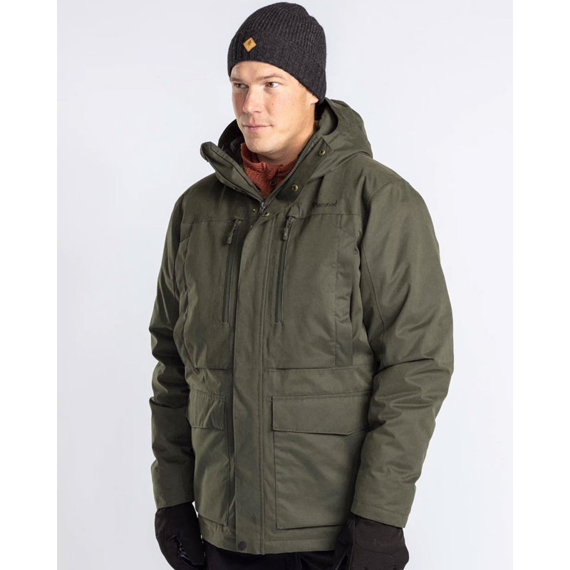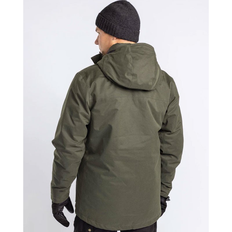The hood features a reinforced brim that protects from rain and adjusts with a drawstring. It also has an integrated collar lined with comfortable fleece against the neck. The extra-high collar protects the face from rain and snow, and the jacket's zipper has a magnetic placket to prevent moisture from penetrating. Integrated cuffs with thumb holes allow them to be pulled on over the hands for extra warmth. Thanks to its two-way zipper, the jacket opens from both the top and bottom, which is convenient when you're sitting and want to open the zipper from the bottom for more freedom of movement. • Water column: 13,000 mm • Breathability: 19,0000 g/m2/24h