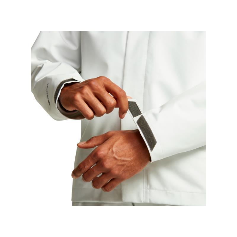 Features: Waterproof/breathable GORE-TEX fabric helps you stay comfortable and focused. GORE-TEX 3-layer non-disposable fabric with a 75-denier polyester face and durable water-repellent finish. The fabric color conceals by mimicking the color and UV-reflection profile of snow goose feathers. The zipper flap prevents mud from entering the zipper and causing a failure. Articulated cut with room for layering. Adjustable hood with a rigid brim providing peripheral vision and protection from heavy rain. YKK® AquaGaurd® zippered pockets for storing essentials. Velcro wrist adjustment to seal out rain and mud.