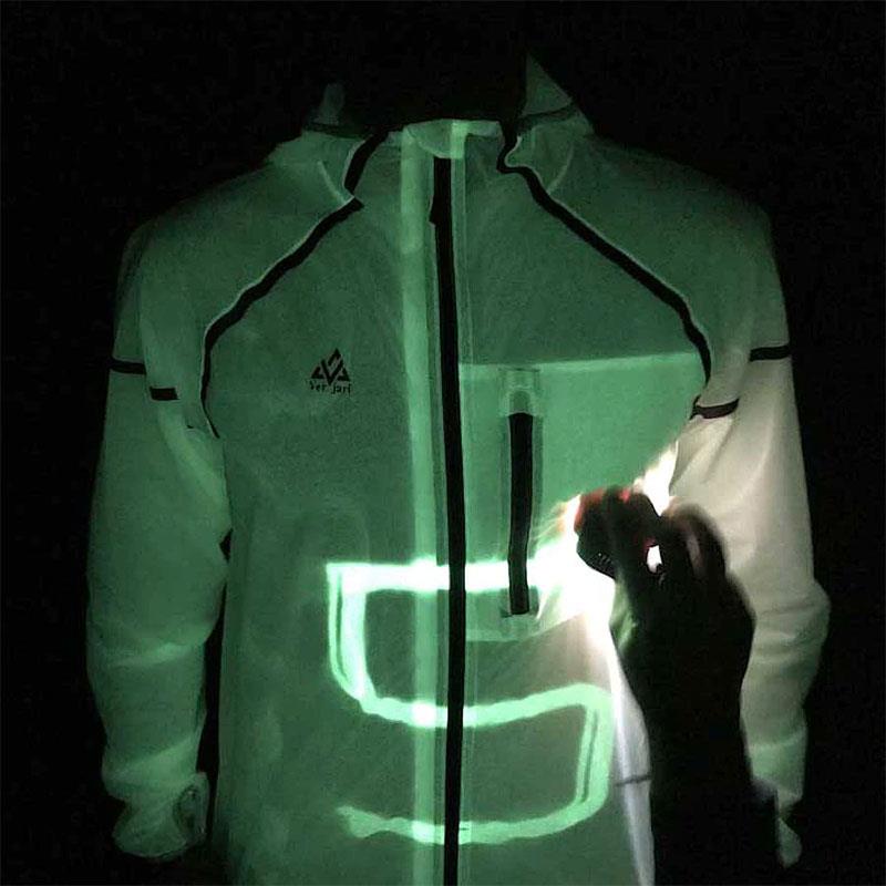 It is possible to write and play with light on the fabric. Inspired by the bioluminescence of fireflies ("FIREFLY"), the jacket was created to increase visibility in night running.