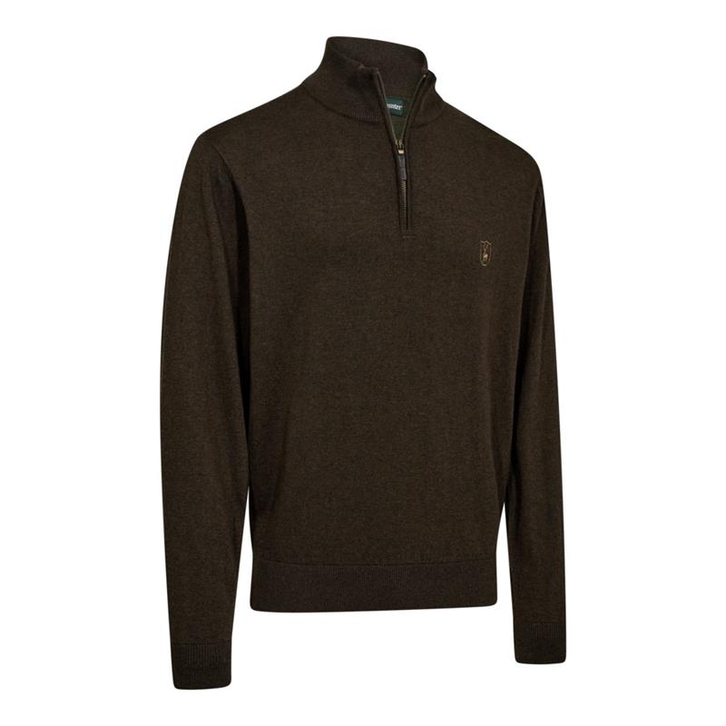Men's Jumper Deerhunter Tricot Harrington ½-Zip - Brown Melange