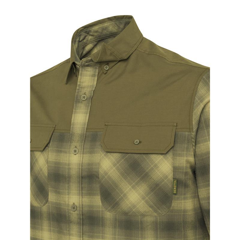 Men's Outpost shirt, made of a blend of recycled polyester and spandex, with double patch pocket on the chest. Ideal for outdoor activities and early season hunting. Reinforcements in double fabric on the collar, chest, top and underarms.