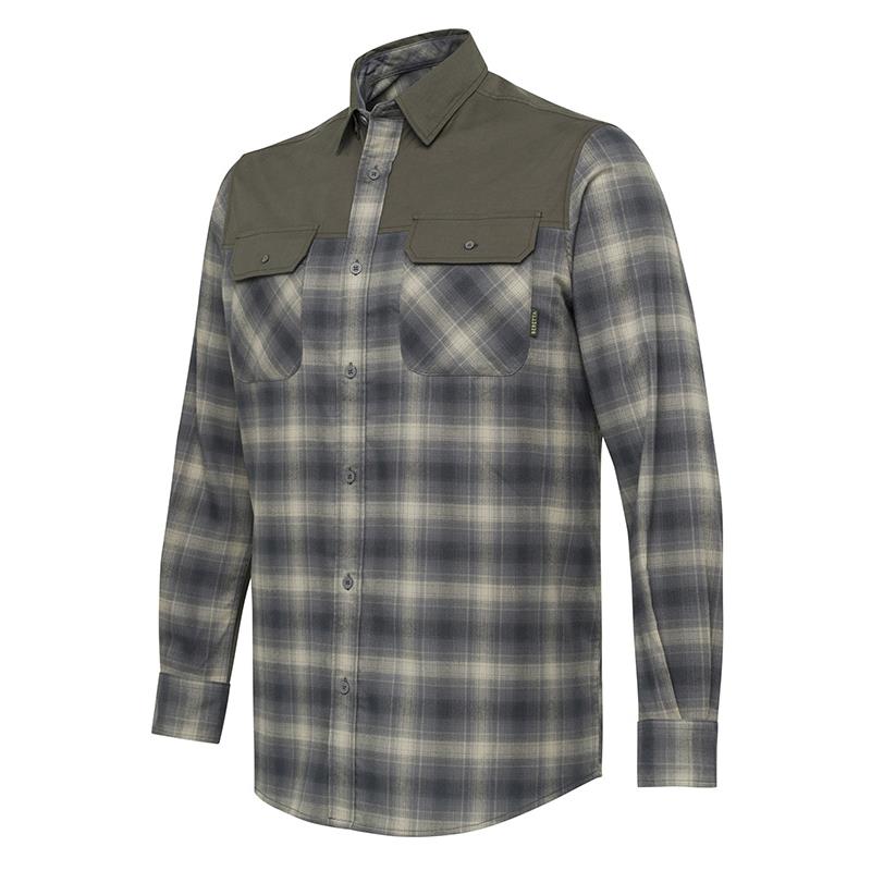 Men's Outpost shirt, made from a blend of recycled polyester and elastane, with double patch pockets on the chest. Ideal for outdoor activities and early season hunting. Reinforcements in double fabric on the collar, chest, top and underarms.