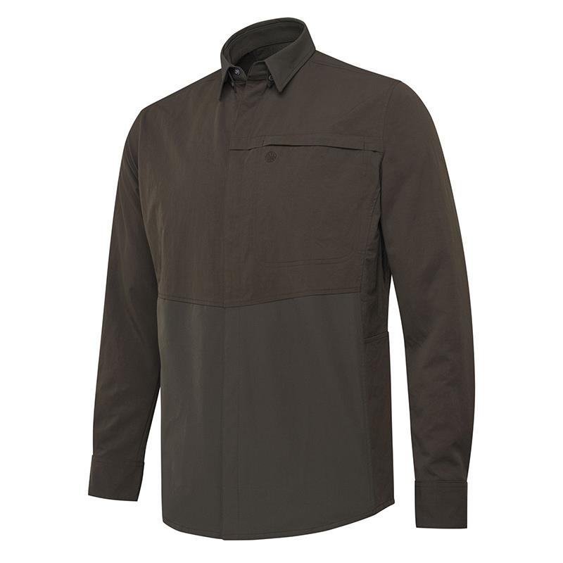 Features: • Hidden buttoned collar • Snap closure under flap • Patch chest pocket with YKK zip • Cloth at bottom for glasses cleaning • Beretta logo embroidered on chest • Cut: straight