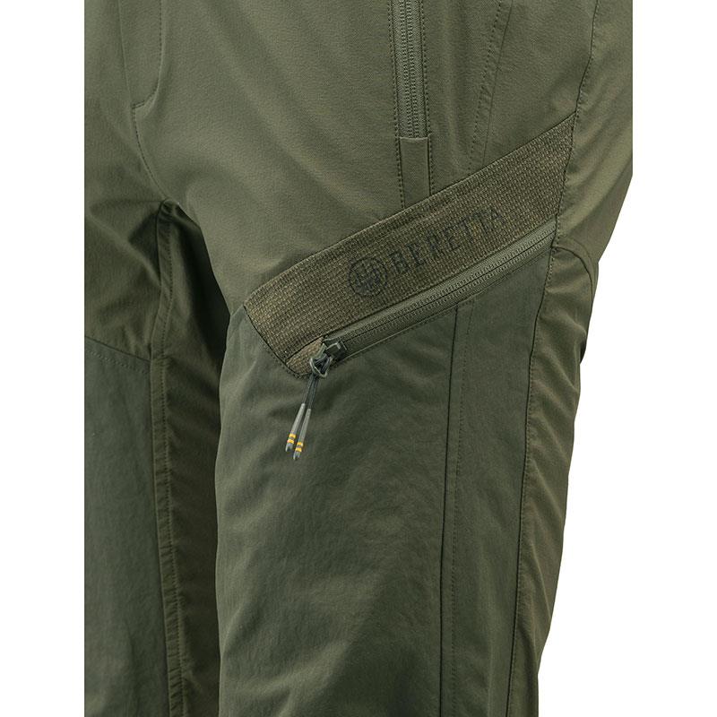 Features: • Elastic waist • YKK zipper and snap buttons • Belt loops • Inner buttons for suspenders • Side pockets with YKK zipper • Front pocket on the left leg • Ventilation slits on the outside of the leg with YKK zipper • High lumbar support • Back pocket with YKK zipper • Rubberized Beretta logo on the back • Fit: regular