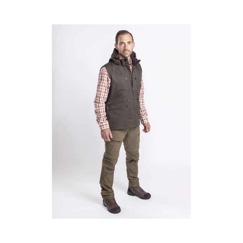 Features: • Waxed finish • TC stretch for high comfort • High breathability • UV Protection • 4-way Stretch • Water-repellent finish • Elastic waist • 2 leg pockets with zippers • 2 front pockets with zippers • Slim fit • Adjustable leg bottoms • Zippers at the bottom for easy booting • Plastic hook inside the lower legs for boots • The detachable part can also be used as gaiters by using the elastic cord function. • The zip-off gaiters can be closed with an elastic cord • BIONIC-FINISH ECO water-repellent treatment • Material: 96 % polyamide, 4 % spandex; Outer fabric 2: polyester 64 %, cotton 34 %, 2 % spandex • Weight: 680 grams