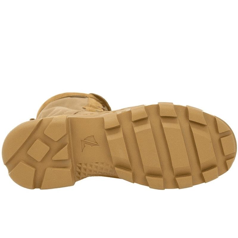 Features: • High intervention shoe • Suitable for warm areas • Bidirectional passive drainage system • Closed eyelet loops • Pocket to store and hide laces • Antimicrobial and hydrophobic breathable lining • Rubber grip and non-slip sole • Contoured arch support • Articulated shape of heel and outsole for stealthy and silent foot roll • Puncture resistant composite plate with rotation for protection and to limit fatigue • Compression moulded EVA dual zone midsole • High heel of 20 mm • 8 mm studs at the heel • 5.5 mm studs at the forefoot • 1000D Cordura® nylon upper, Tek-Dry™ lining • Full grain cowhide leather • Height 9" • Weight (43/9.5us): 670 g • US size