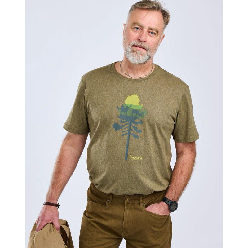 Men's Short-Sleeve T-Shirt Pinewood Finnveden Recycled Outdoor - Olive Mel Pine Tree - Pack Of 3