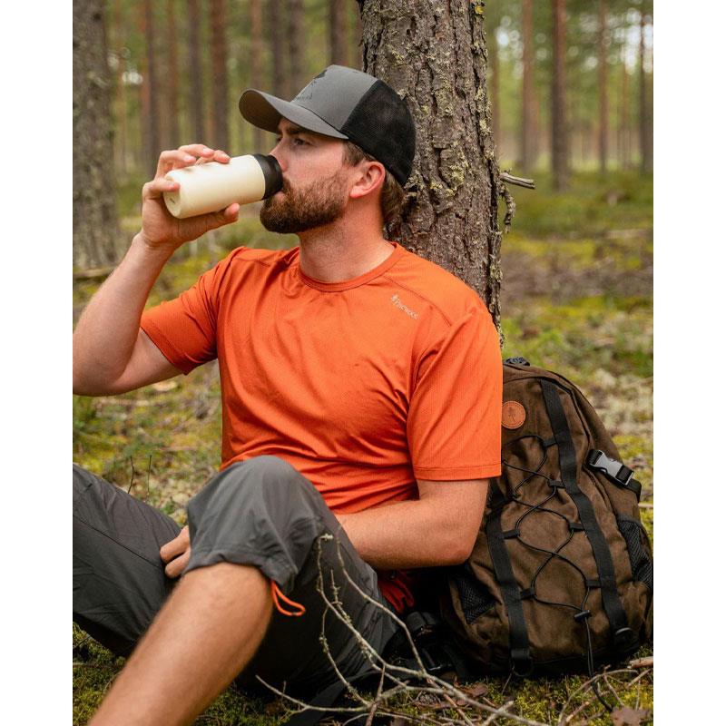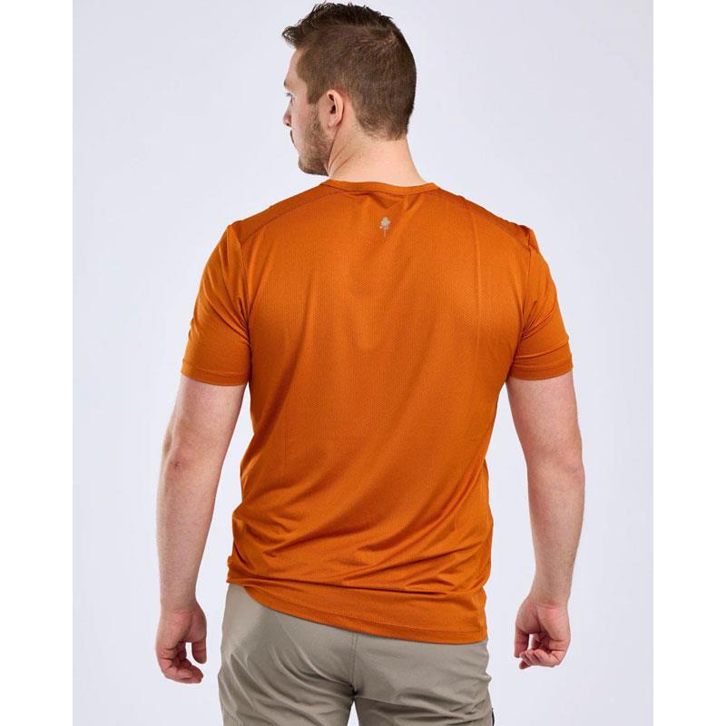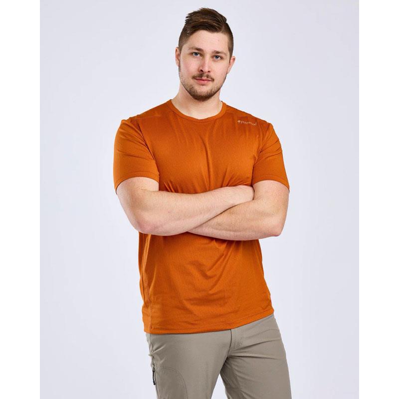 This men's performance T-shirt features a ventilated knit that allows moisture to evaporate during intense activities. Crafted in a lightweight, easy-care and wrinkle-resistant sports fabric, it is ideal for training, hiking or any high-intensity activity. It is also Oeko-Tex® certified. A sleek, reflective print on the front enhances visibility.