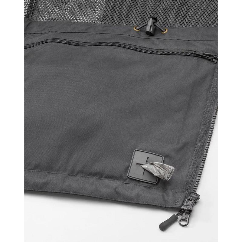 Front pockets on both sides with magnetic buttons and elastic D-ring. Possibility to attach the front pocket cover inside so that you can easily access your items. Hand-resting pockets and double chest pockets. Two inner pockets - easy to reach, one with a rubber opening for dog poop bags. Small chest pockets for clicker and pencil.